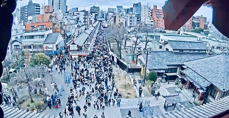 うわ…😅 宝蔵門から雷門までの参道(仲見世商店街)に、これまたギッシリしりしり尻餅ドスコイ!アちょ〜!…なほどに尻餅すらつけないほどの おびただしい数の初詣客。