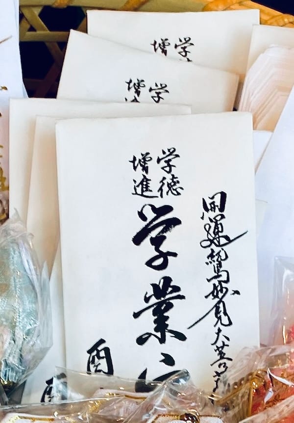紙袋の中に「学業成就 鷲妙見尊」と墨書きされた絵馬のような木札が封入されており、上部に丈夫そぅな紐が付いていて、吊るすことが‥できちゃぅ。