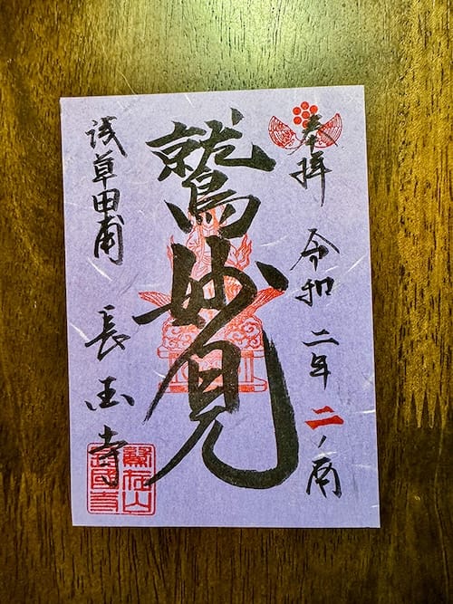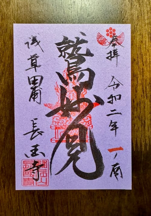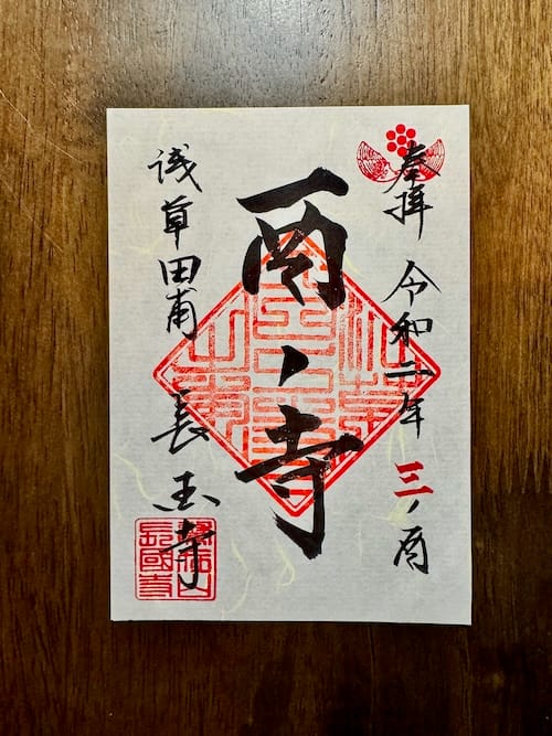 右端に参拝日、左端に「浅草田甫 長國寺」