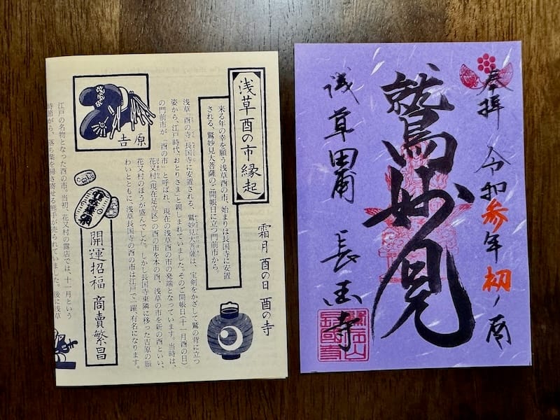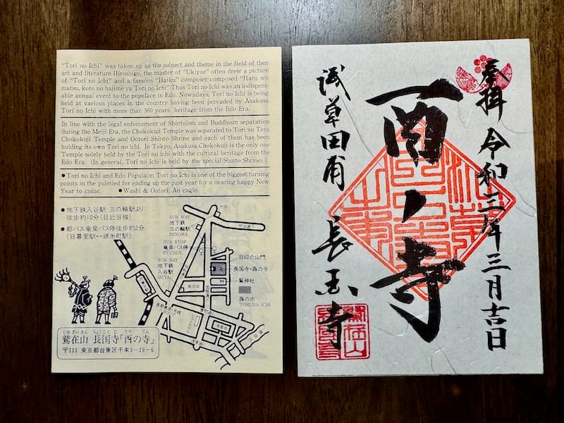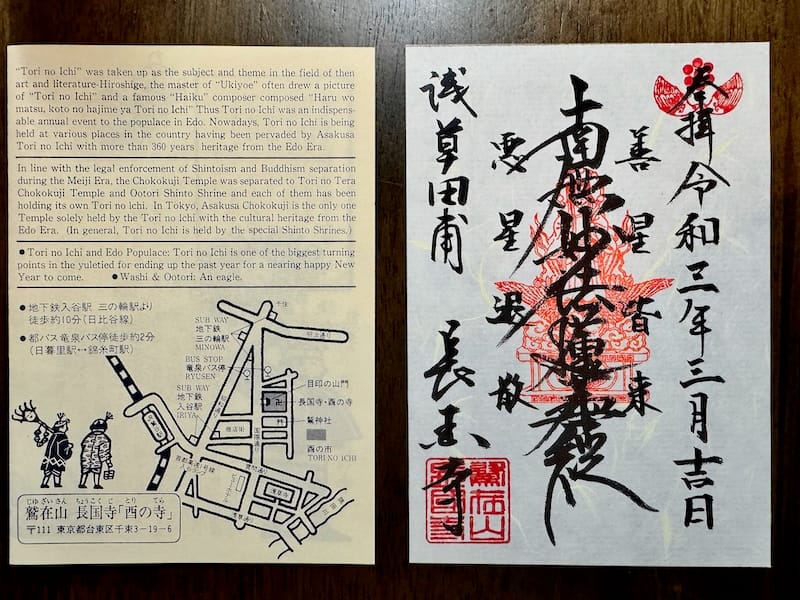 授与場所:本堂前(酉の市のみ本堂前の臨時授与所にて御朱印を頒布)