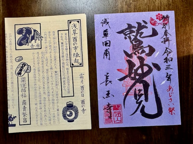 酉の市の御朱印