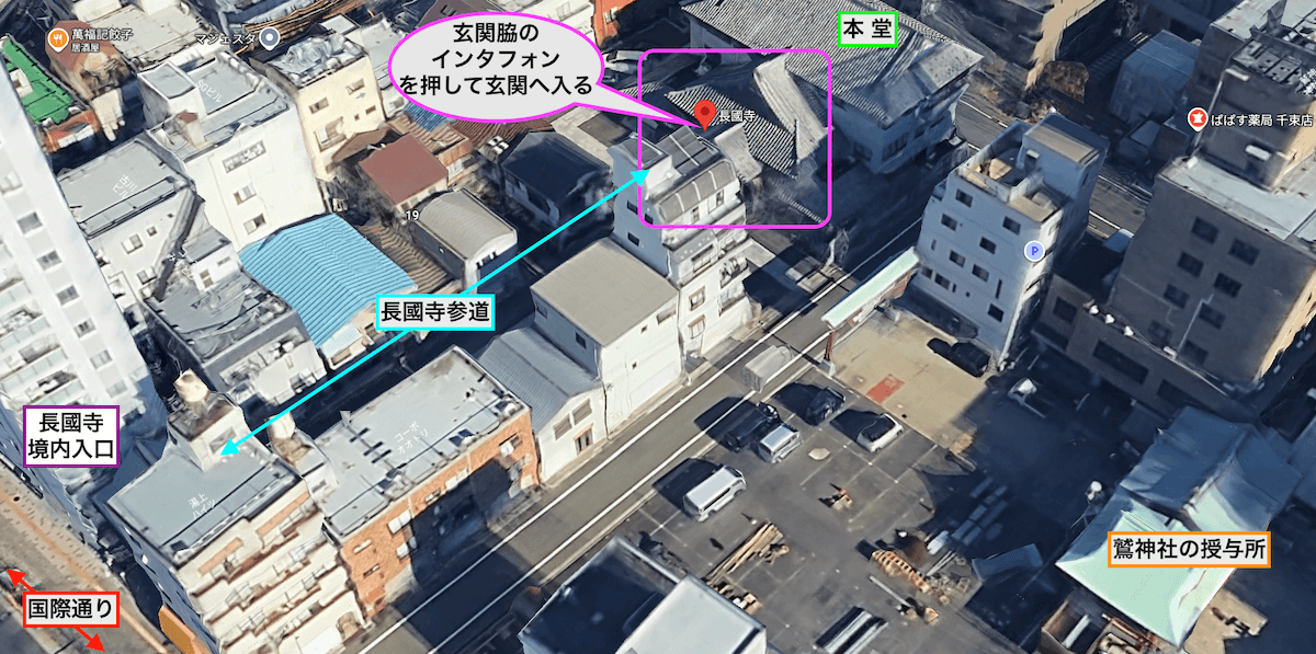 長國寺境内図と本堂(玄関)の場所