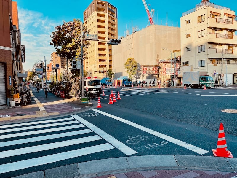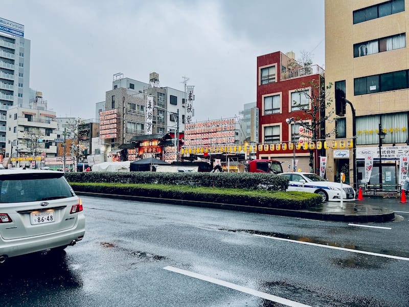 分かりづらいけど‥実はこの道路の先で交通規制しとって、浅草酉の市の開催日の周辺道路は車両通行止になっとるから、素敵に無敵に要注意💘