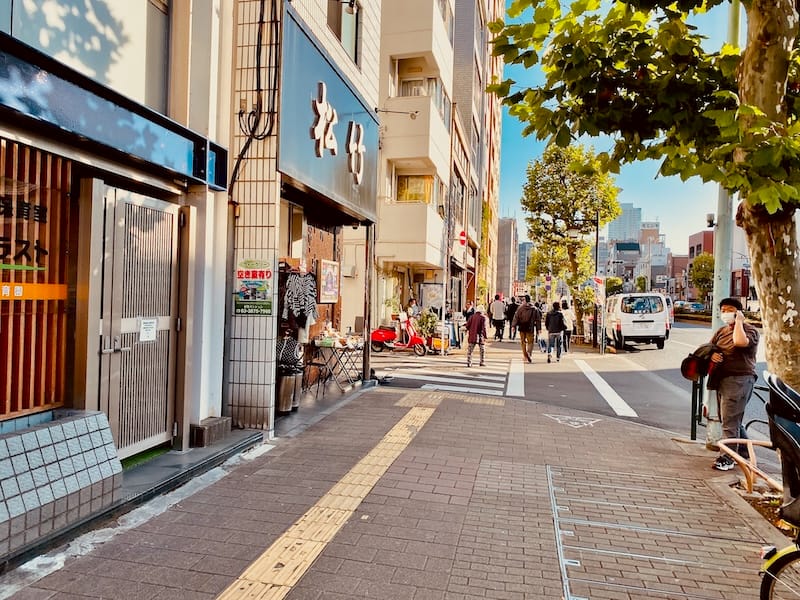 浅草松屋前からタクシーに乗った場合、そのまま素敵に北進し、土手通り沿道の日本堤消防署の一つ北側の交差点で降りて、左方に見える「仲之町通り」を西進する。