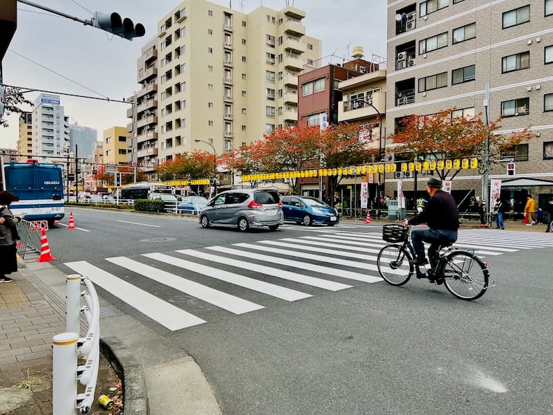15時頃の鷲神社前横断歩道の様子
