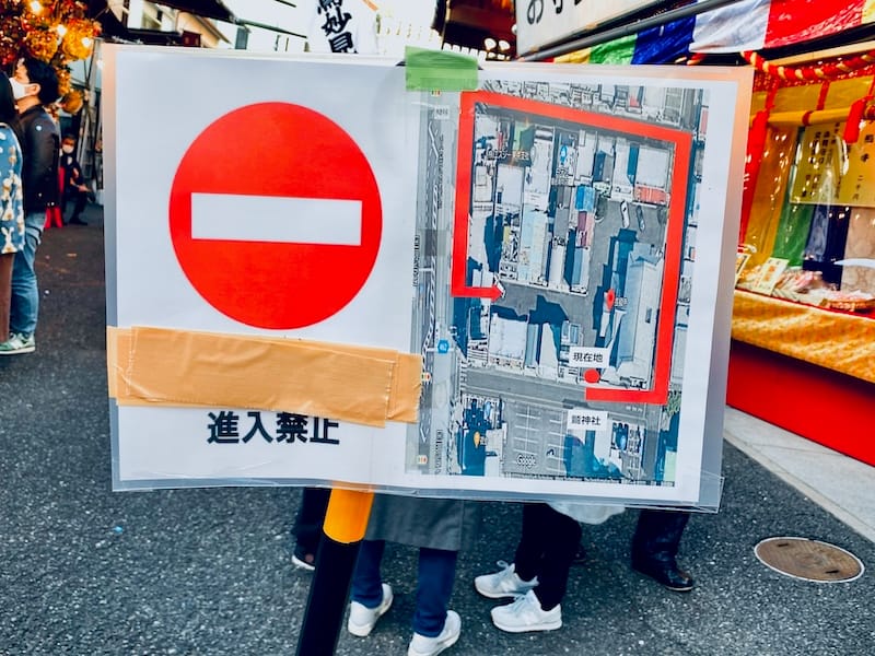 酉の市当日、鷲神社周辺の道路は車両通行止やら、進入禁止場所があったりするので、注意が必要💘