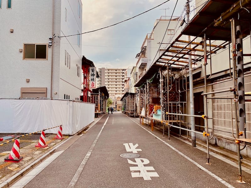 ちなみに左端にパンツちら見え級にチラ見えとる赤色屋根の建物は鷲神社本殿に‥なっちゃぅ。つまり、ここは裏通り。