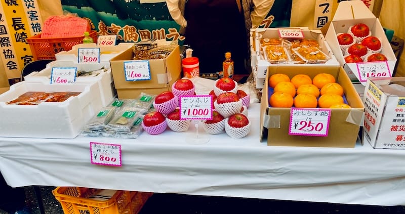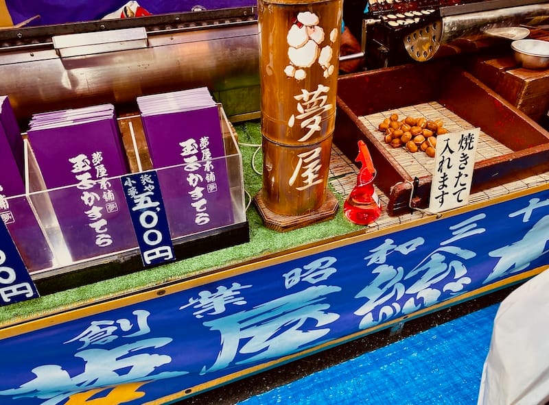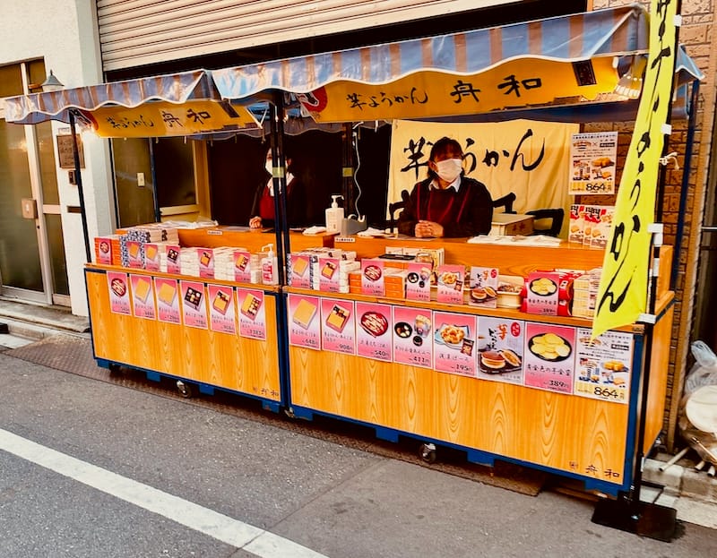ザ・りんご飴、りんご飴(「ザ」は付かん)、あんず飴(あんず、すもも、いちご、みかん、パイン、ブルーハワイ)、わたがし、ばななチョコレート、東京浅草 夢屋総本舗 高級 玉かすてら、フルーツあめ、